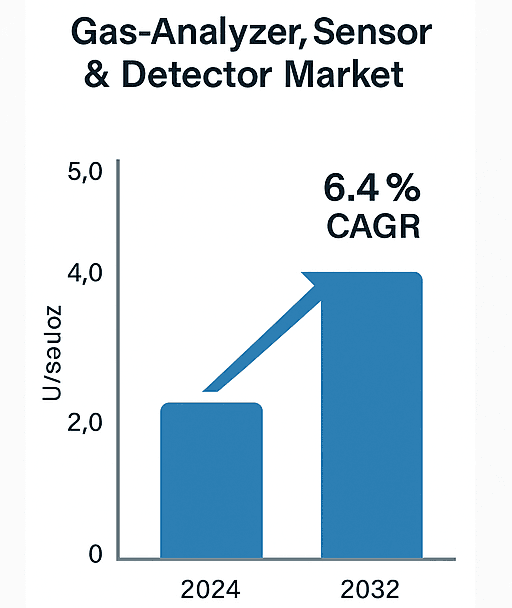 The global market for gas analyzers, sensors, and detectors is forecast to expand from US $4.3 billion in 2024 to US $7.2 billion by 2032, reflecting a compound annual growth rate (CAGR) of 6.4 %.